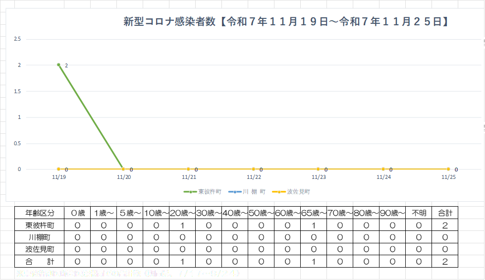 11月19日から11月25日の新型コロナウィルス感染者数は2名です。
